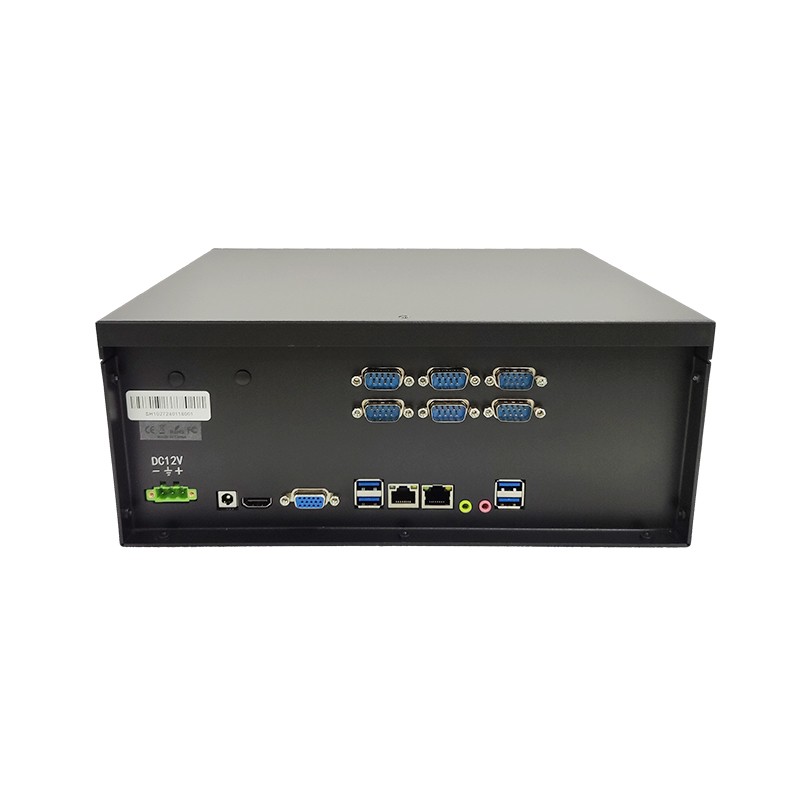 | Front I/O | 4*USB3.0 6*COM (COM1 supports standard RS232, RS485, RS422 optional, BIOS setting) 2*RJ45 1*Line-out 1*MIC 1*VGA 1*HDMI 1*12V DC-JACK 1*3-pins terminal block connector(DC12V) |